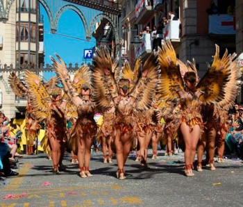 Nos sumergimos en un mundo fantástico, delirante, onírico. En una lucha entre el día y la noche que avanza de forma amenazante sobre una carroza, a modo de ariete, tirada por tenebrosas criaturas de lo Oscuro. La cabalgata abre con un enorme traje que arrastra formando una estela, donde destacarán unos fabulosos colores rojizos, negros