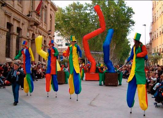 Colorfrida es un pasacalles interactivo: Grandes zancudos y muñecos hinchables bailan por el recorrido y sorprenden con sus evoluciones, mangas hinchables que lanzan confeti e hipnotizan con su movimiento con duendes con balones de colores que aumentan la participación del público.