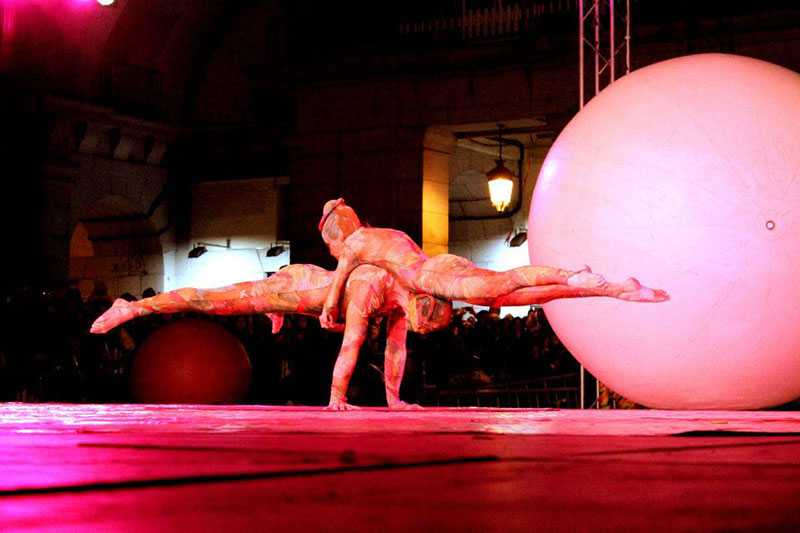 Un baile de formas y seres irreales repletos de imaginación, que se transforman en luces y sombras, en sorpresa e imágenes, sonidos de extrañas sensaciones y animales de increíble destreza. Un viaje a través del tiempo donde se exhibirán los freaks del futuro. Juegan con las formas de estos seres irreales en el que cada uno tiene su peculiaridad y también con los colores, unos utilizando un único color y otros mezclando algunos colores. Varios de ellos alcanzan aproximadamente los tres meros de altura.